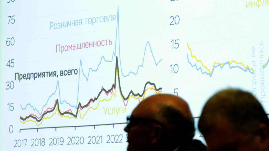 Рустэм Марданов в ответ напомнил, что ЦБ использует «общедоступную информацию из официальной статистики», а также данные опроса бизнеса, который проводится в том числе в Воронежской области (в исследовании участвует 200 местных средних и малых компаний различных видов деятельности – Прим. РИА «Воронеж» ).