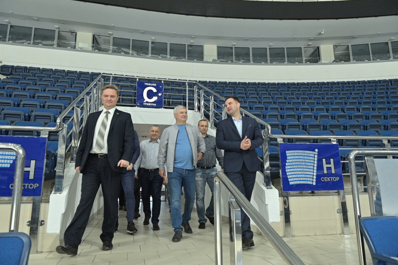 Губернатор посетил масштабные спортивные объекты в Минске — олимпийский стадион «Динамо», которые вмещает более 20 тыс. зрителей, а также многопрофильный культурно-спортивный комплекс «Минск-арена», в котором можно проводить соревнования по 25 видам спорта.