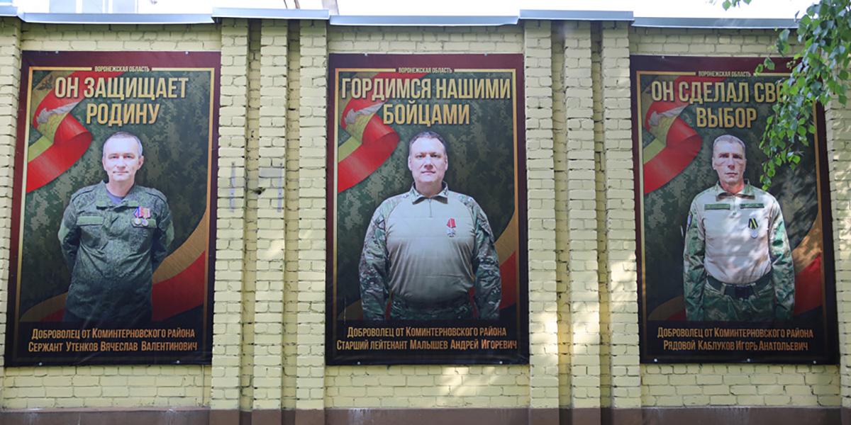 На стенах военкомата в Воронеже развесили баннеры с участниками СВО