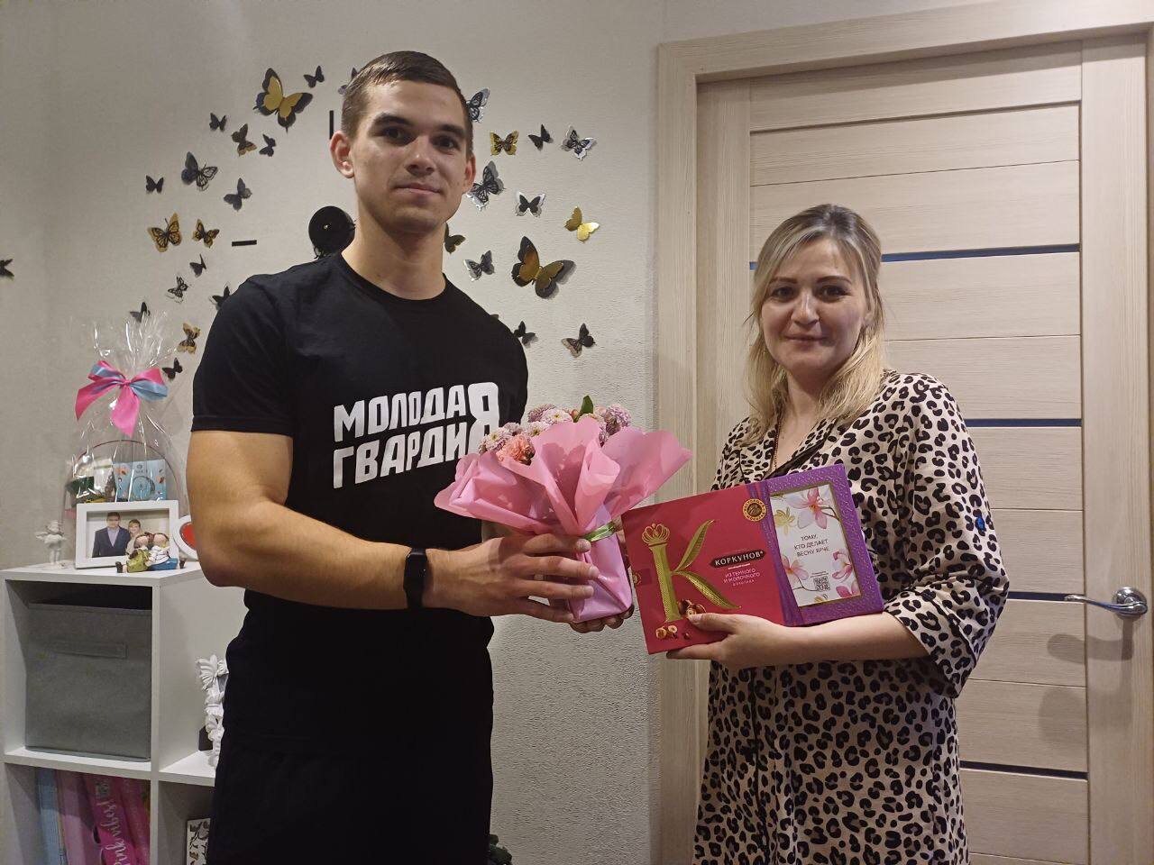 Нововоронежские молодогвардейцы поздравили родственницу военнослужащего с 8 Марта