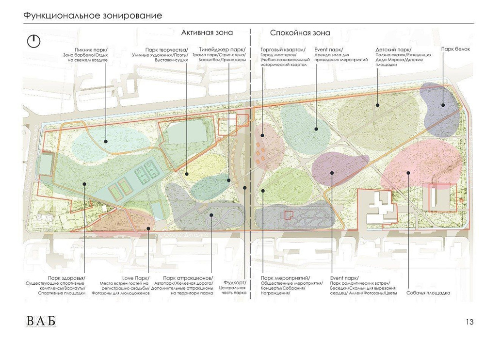 – Считаю очень важным, что в Воронеже находятся предприниматели, готовые вложить в городскую территорию немалые 415 млн рублей, понимая, насколько она важна и с каким пристальным вниманием за ходом работ будут следить и муниципалитет, и горожане, – подчеркнул Вадим Кстенин. Разработанная "Воронежским архитектурным бюро" концепция помимо детального изучения рабочей группой, в состав которой вошли отраслевые специалисты муниципалитета – экологи, архитекторы, экономисты и т.д., а также представители депутатского корпуса городской Думы, была рассмотрена и на заседании архкомиссии при региональном градсовете. Предполагается максимальное сохранение пешеходных связей, которые представляют транзит улиц, организация тропы здоровья, беличьего парка, археологической песочницы, резиденции Деда Мороза, территории для молодоженов, проведения мастер-классов и др.
