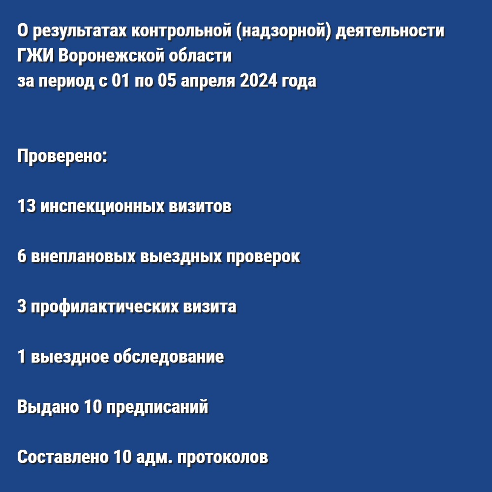 О результатах контрольной (надзорной) деятельности ГЖИ Воронежской области за период с 01 по 05 апреля 2024 года