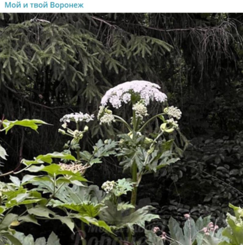 Местные жители сфотографировали борщевик Сосновского Ядовитое растение заметили воронежцы в Центральном районе города Крайне опасный для окружающей флоры агрессивный сорняк заметили воронежцы у ботанического сада в