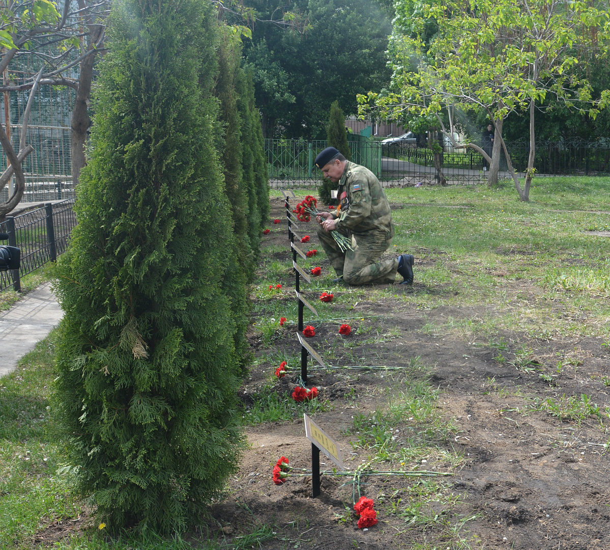 Вместе с юнармейцами Александр Иванович, в знак уважения, преклонил колено и возложил алые гвоздики к каждой табличке с именем Героя. Полковник полиции в отставке и боевой офицер подчеркнул, все кто отдал свои жизни за Родину, останутся в нашей памяти, и в наших сердцах.