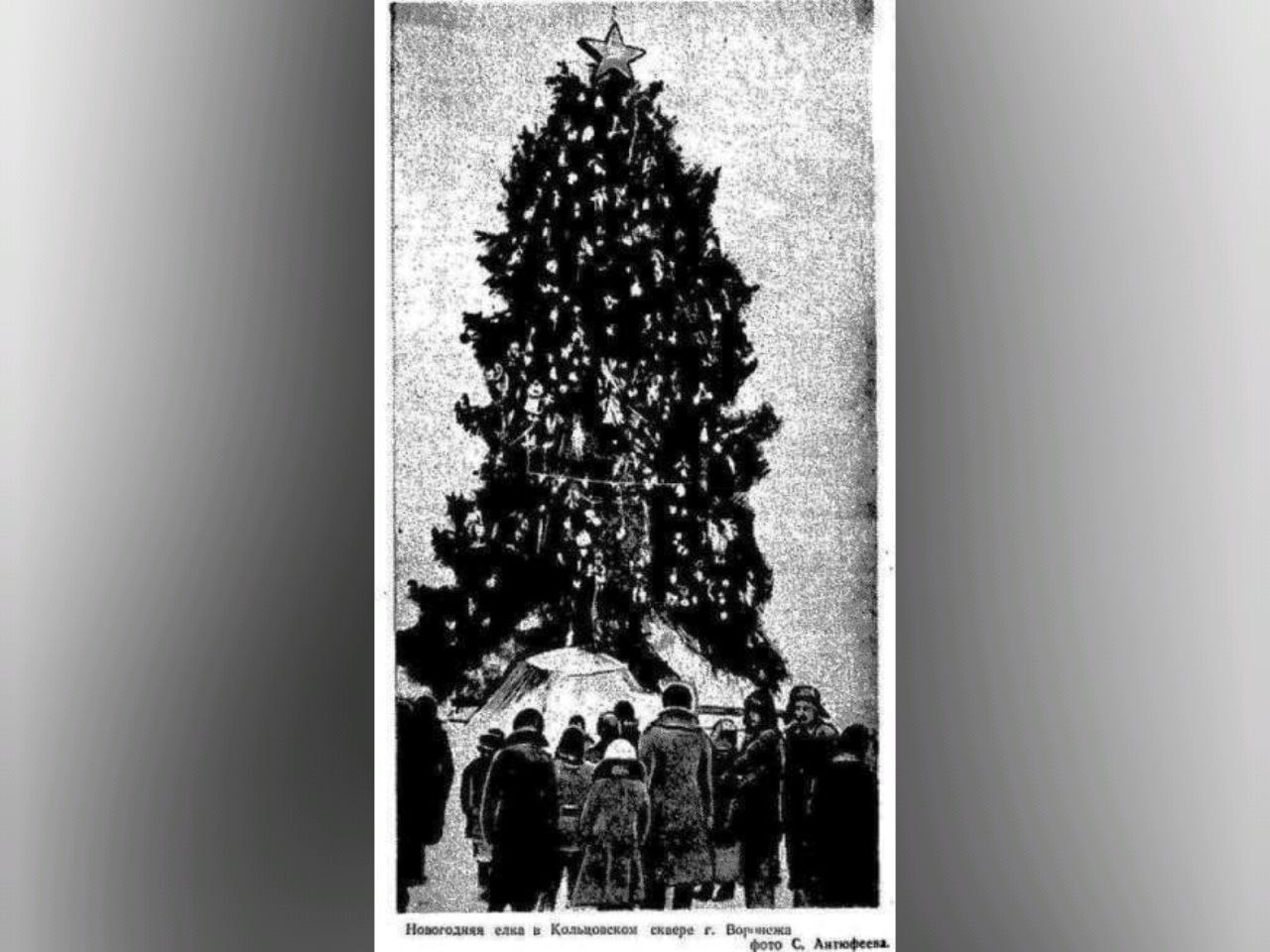 Но Новый год оставался особенным праздником даже в годы Великой Отечественной войны, в декабре 1943 года, спустя несколько месяцев после освобождения города от немецко-фашистских захватчиков в Кольцовском сквере установили новогоднюю ель.