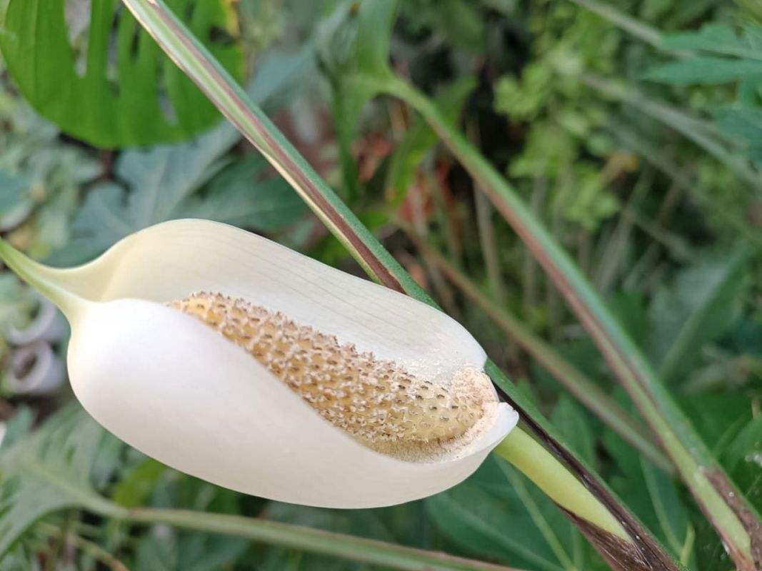 Расцвела монстера — крупное тропическое растение, относящееся к лианам.