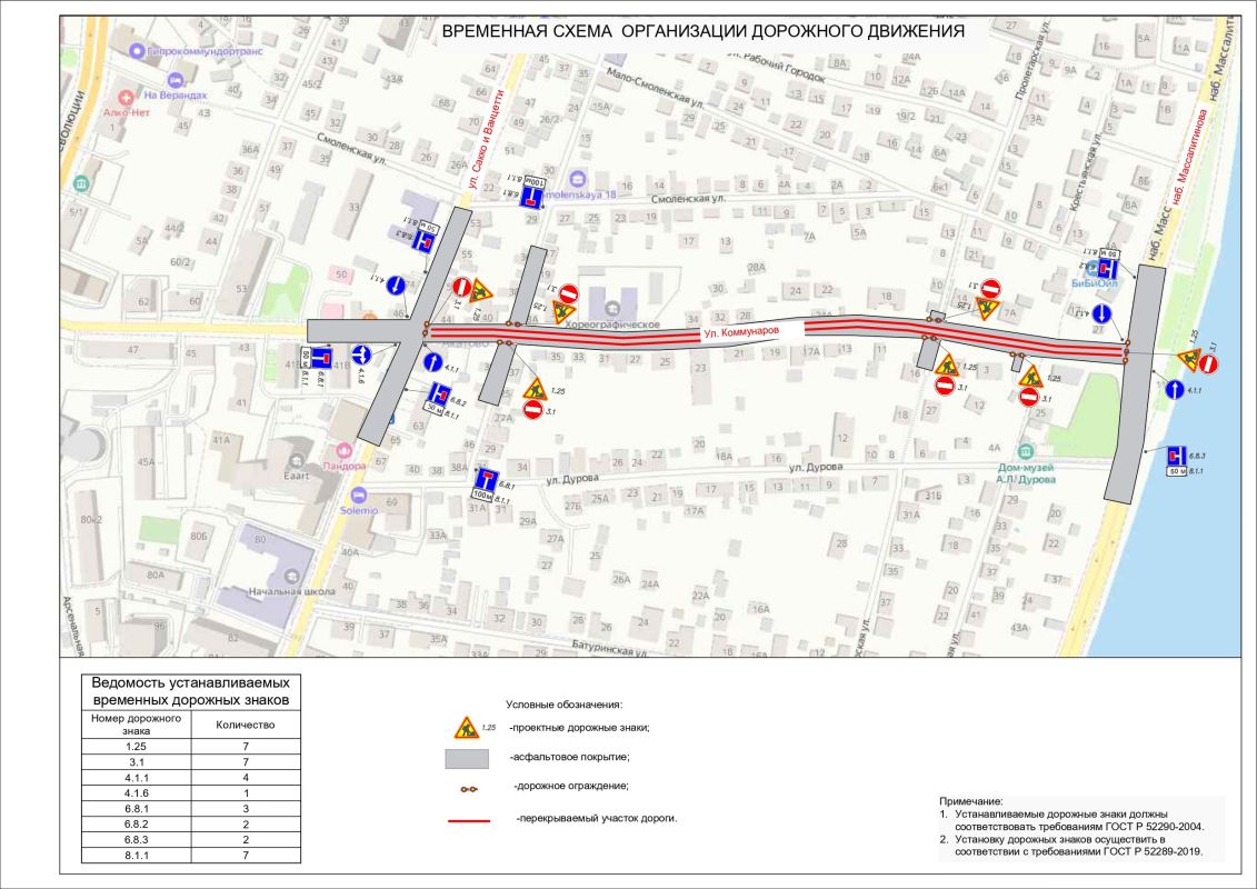 Улицу временно закроют от пересечения с улицей Сакко и Ванцетти до пересечения с набережной Массалитинова.