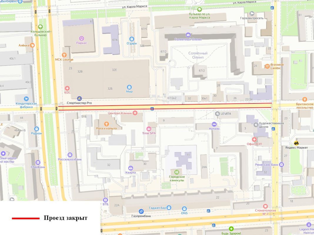 Закроют движение на участке от улицы Никитинской до улицы Кольцовской.