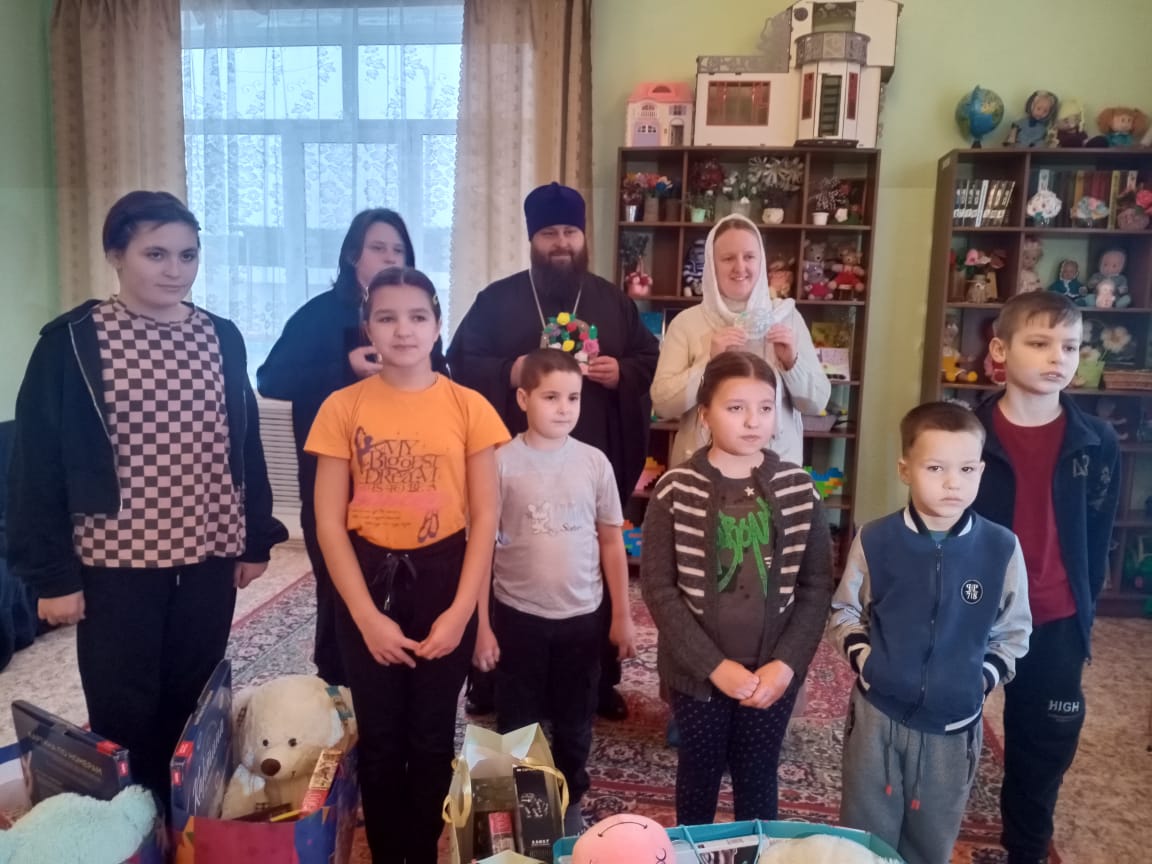 В рамках ежегодного благодеяния "Рождественское чудо-детям" благочинный Каменского церковного округа, настоятель Казанского храма посёлка Каменка, иерей Сергей Папин с матушкой Надеждой поздравили воспитанников отделения с. Тимирязево Каменского района с прошедшими Светлыми праздниками и вручили подарки.