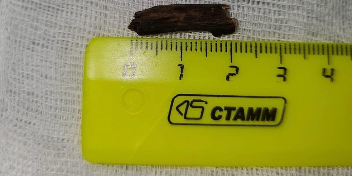 Рентген не показал наличие инородного дела. Врачи приняли решение провести бронхоскопию. Медики успешно извлекли кусок ветки длинной 2,3 см.
