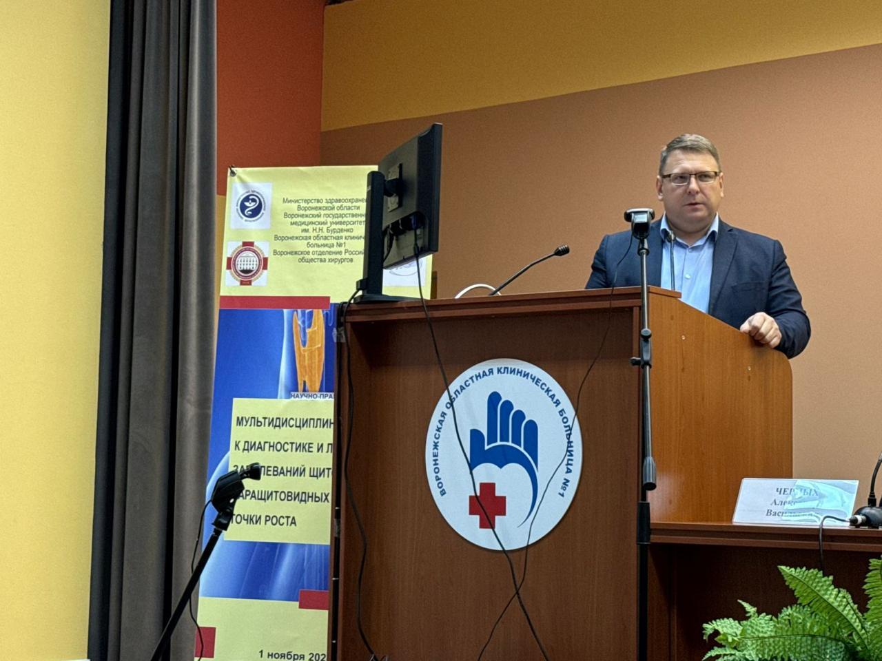 1 ноября 2024 года в соответствии с планом мероприятий Воронежского отделения Российского общества хирургов на базе Воронежской областной клинической больницы №1 в гибридном формате состоялась научно-практическая конференция: «Мультидисциплинарный подход к диагностике и лечению заболеваний щитовидной и паращитовидных желез: точки роста».