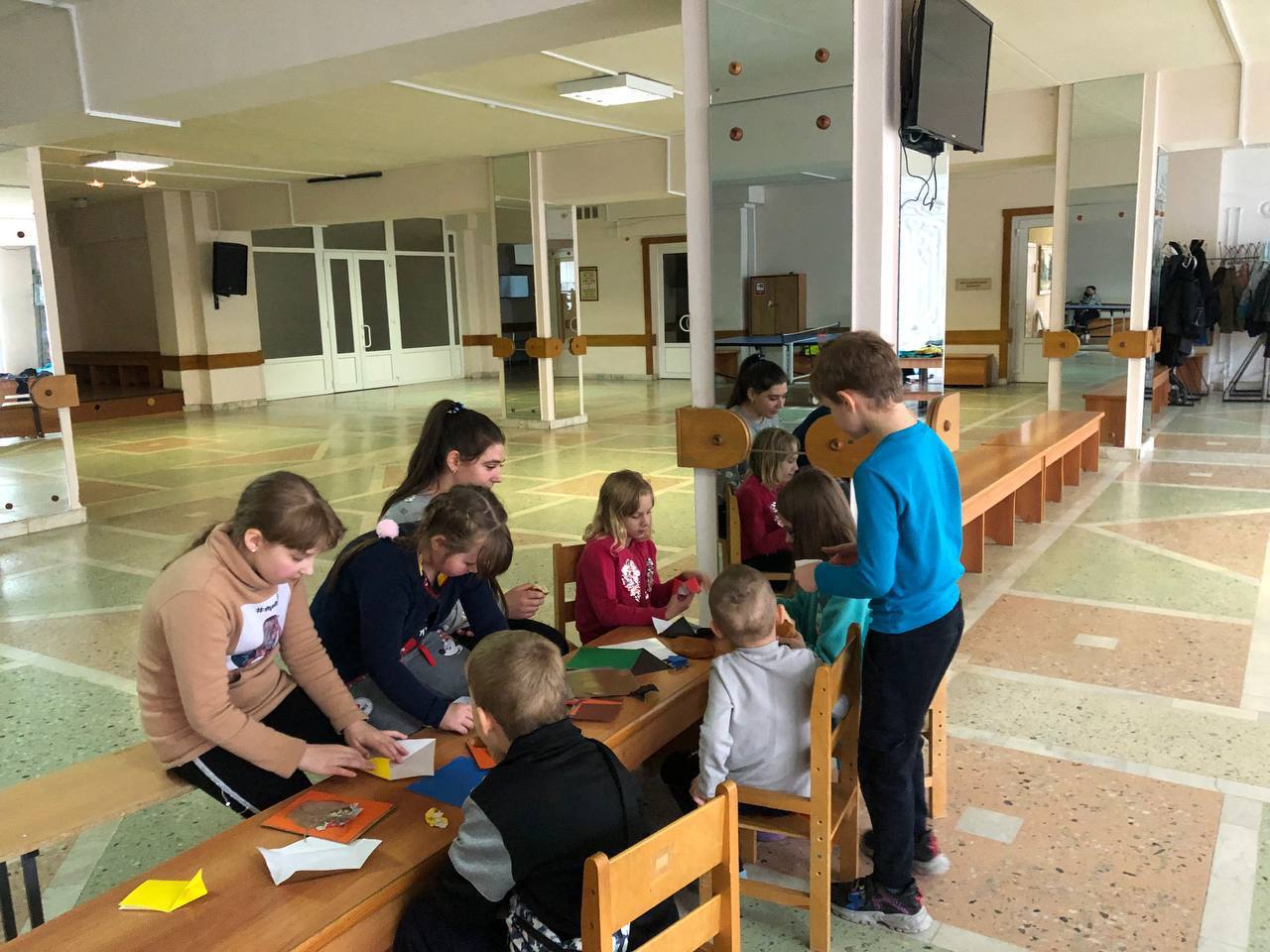 Воронежские молодогвардейцы провели для детей, находящихся в пункте временного размещения, мастер-класс по оригами.